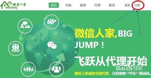 步骤一,打开weixinrj网站,点击右上角的注册创建一个账户并登陆。