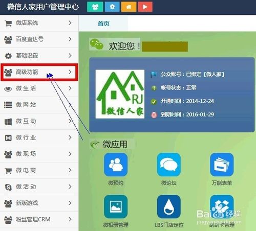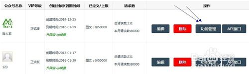 步骤三,完成绑定与API配置以后,点击“功能管理”进入活动列表页面。