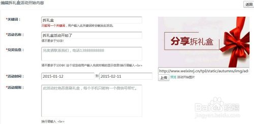 步骤五,按照提示填写开始内容,包括关键词、名称、“规”则说明、时间、背景、宣传图片等。