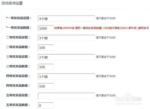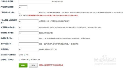 步骤七,填写奖项设置,注意红色的提示语,SN码,手“机”号等不懂可以空着不填。