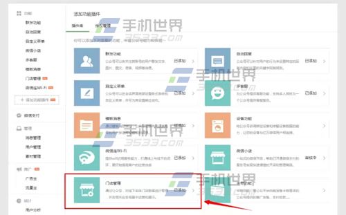 2)选择【门店管理】插件,然后点击【申请开通】,如果你的公众号符合资格(初期向有认证资质的服务号及有卡券功能的公众号开放),将可以即时开启该功能。(如下图)