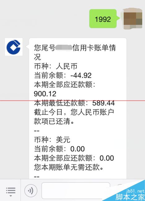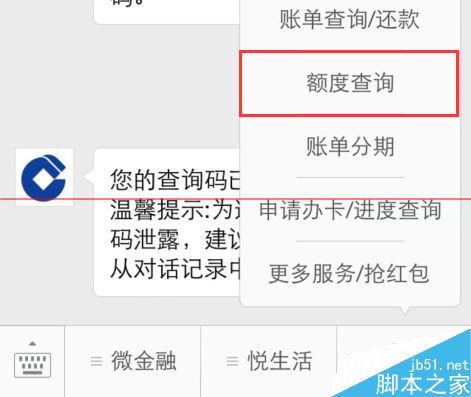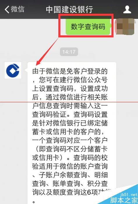 2、在建行的公众微信号里面输入数字查询码,之后微信号会发一个提示出来,具体看下图。