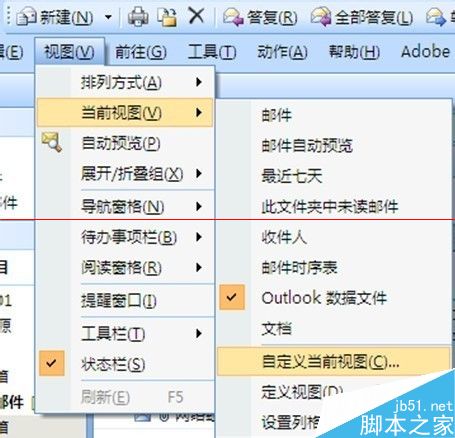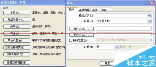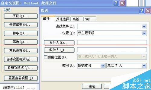 3、由此怀疑大部分邮件被隐藏了,通过查找该收件箱的属性,在视图->当前视图->自定义当前视图中有一项筛选的功能,