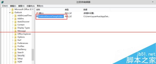 7、在右窗格中,双击“OutlookSecureTempFolder”。