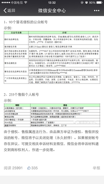 3月15日当天微信发布了《微信朋友圈使用规范》,其中明确指出了各类违规行为,并公布了处理准则,同时上线的还有微信安全中心官方微博与公众账号。在《规范》发布后的几天时间里,微信安全中心已经对第一批品牌方投诉的售假账号进行了处理。
