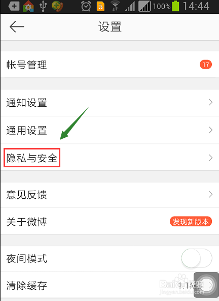 在设置页中间有"隐私和安全",点击之后会转到新的页面,如图