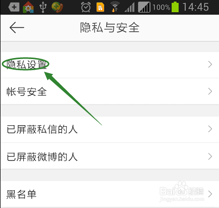 我们选择其中的"隐私设置",然后在该选项里可以看到此时关于手机号搜索功能是开启着的