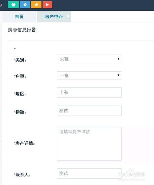 首先,进入功能管理,高级功能找到“房”|‘产’|‘中’“介”,进行添加“房”‘产’信息,保存即可。