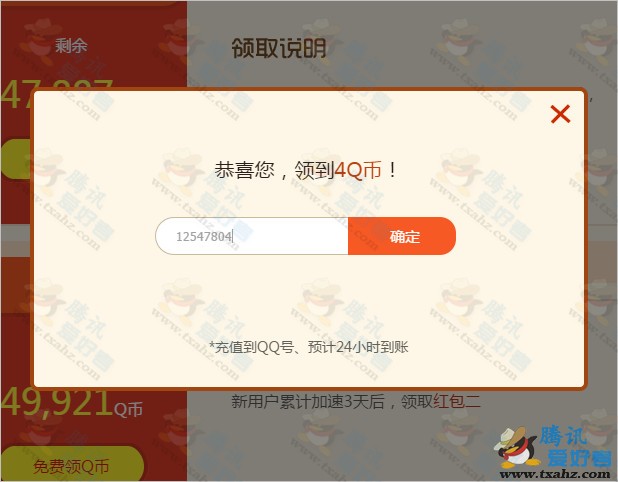 看样子运气不错,得了4Q币,我看页面中2Q币的蛮多的,还以为我也是2Q币~