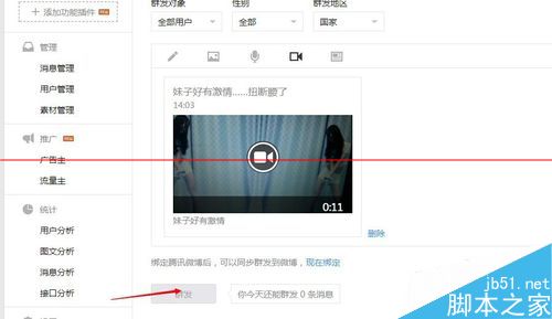 6、下面点群发功能,点击如图所示的视频。