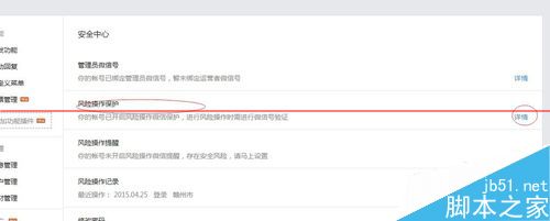 4、在安全中心,选择风险操作保护,点击详情。