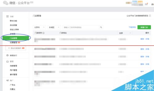 1、打开微信公众平台,登陆账号,点击左侧菜单栏里的“门店管理”。