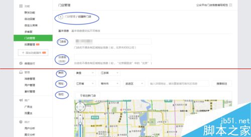 2、点击“新建门店”,依次填好相应类目。门店名称的填写有具体的要求,门店名不得含有区域地址信息(如,北京市XXX公司),分店名不得含有区域地址信息(如,“北京国贸店”中的“北京”),这点要注意。