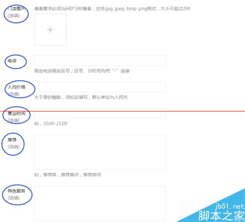 4、门店图片、电话、人均价格、营业时间、推荐、特色服务、简介都尽量填好,有些虽然是选填,但是都填好总是没错的。