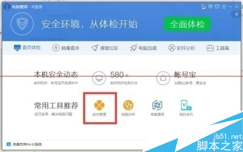 1、如果使用PC版微信,没有显示“电脑管家保护中”,可能是微信PC版本低导致的,可以打开电脑管家“软件管理”功能