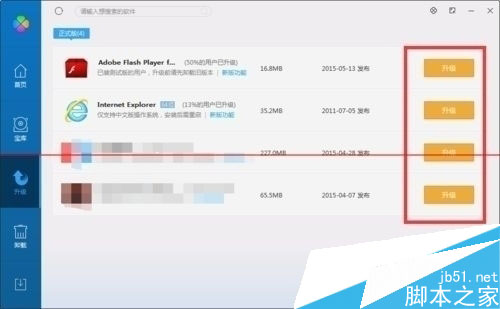 2、然后在软件管理功能中,点击左侧“升级”,然后从中选择微信PC版进行升级即可。