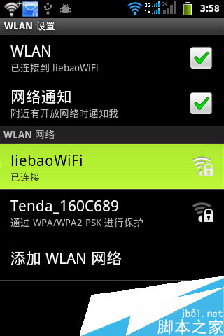 二:确保手机已正确接入猎豹免费WiFi所创建的热点。