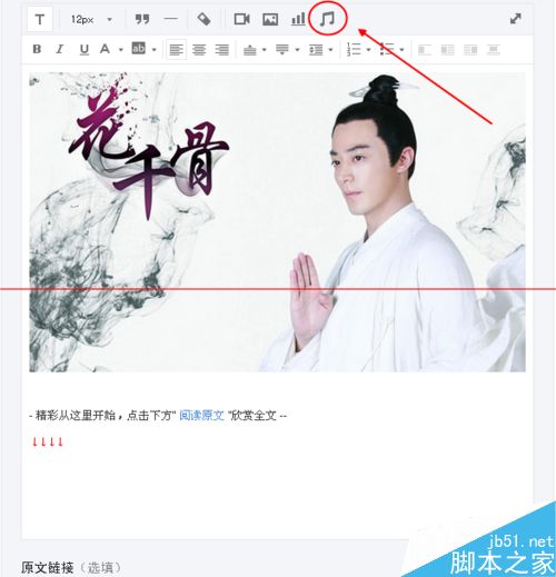 2、在编辑正文的时候,从最顶部的选项栏这里点击【音乐图标】