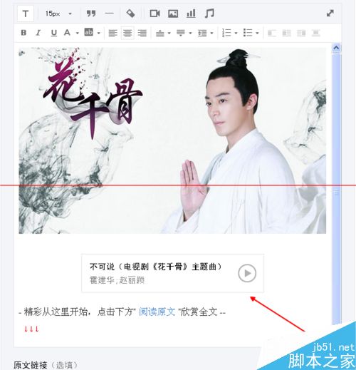 5、接下来返回正文页面之后,我们就可以看到音乐插件已经添加成功了。