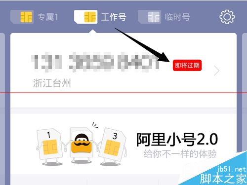 1、在阿里小号2.0版本上,点击带着红点显示【即将过期】的专属小号。