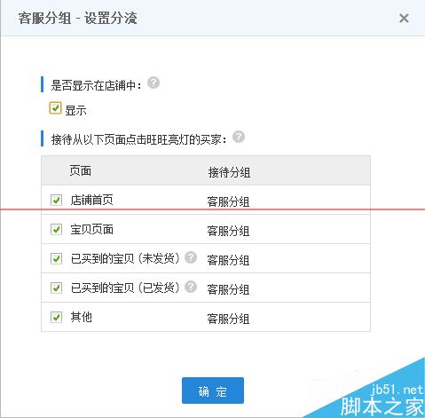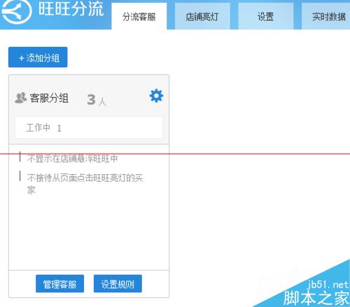 3、管理客服,简单说就是设置用哪几个子账号来分流,如果接收客户消息的话是哪个子账号优先接收,或者停止分流。设置规则则是在淘宝店中哪些位置显示淘宝店
