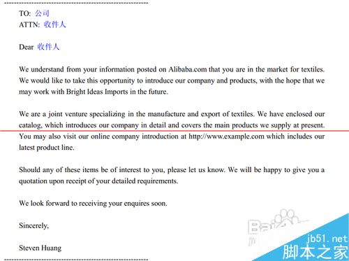 2、打开Outlook2003,新建邮件,邮件格式如下,以下蓝色部分的公司和收件人将分别对应上面Excel表的Company和Contact Person: