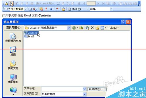 4、点击“邮件合并工具栏”的“打开数据源”,如下图: