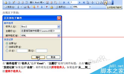 9、点击“合并邮件工具栏”的“合并到电子邮件”: