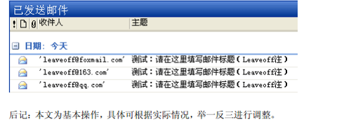 10、稍后在“发件箱”或者“已发送邮件”即可找到刚才自动合并的三封邮件,至此操作完毕。
