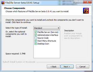 1, 将FileZilla_Server-0_9_41.exe拷贝到准备安装的服务器