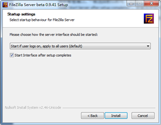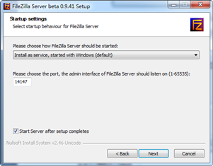 选择FileZilla Server Interface管理程序的启动方式,默认即可,直接点击