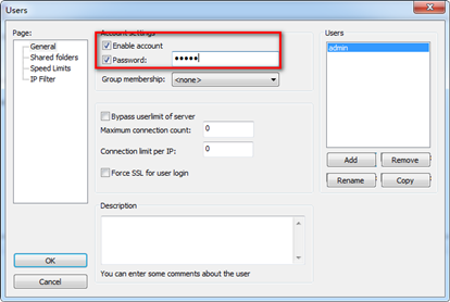 3、 用户名密码及路径设置
