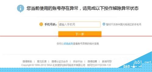 解除办法:第一步:在提示页面输入手机号码,点击下一步;