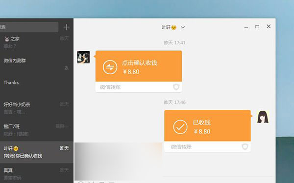 • 可以接收转账消息。