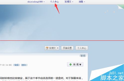 1、进入新浪博客的个人中心首页,点击上方的“个人中心”选项。