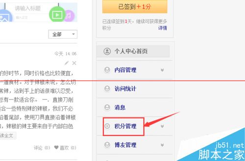 2、在个人中心窗口的右侧,可以看到“积分管理”的选项,点击打开下拉菜单。