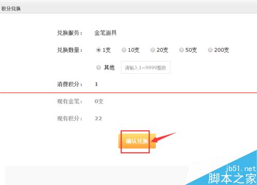 5、其实,金笔的价格倒是不贵,一个积分就可以兑换一只金笔,点击“确认兑换”选项。