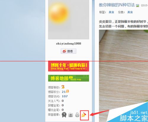 7、再次回到个人中心,可以看到金笔图标已经点亮,金笔可以用来赠送给你喜欢的博主。