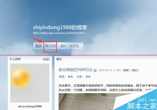 1、进入个人博客的首页,在最上方可以看到“博文目录”选项,点击进入。