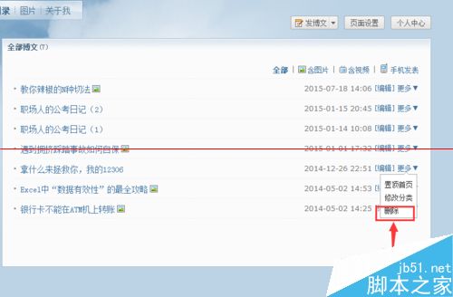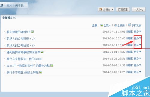 2、在这里你可以发现你所有发布的博文,对于一些你想删除的博文,点击右侧的“更多”选项。