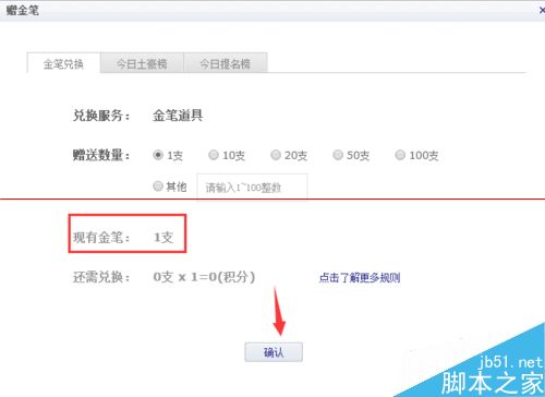 5、确认好赠送的金笔数量以后,点击进行最后的确认。