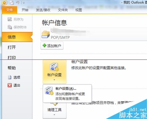 1、打开outlook,文件菜单---信息--账号设置。
