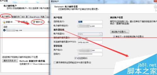 2、电子邮件账号--点击要设置的账号(更改)---进入其他高级设置