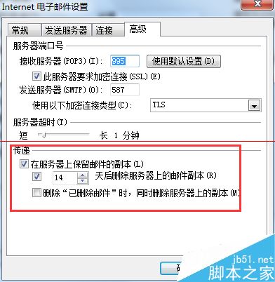 3、服务器高级选项菜单,设置定期删除服务器的副本邮件