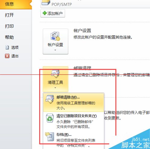 1、打开outlook菜单--信息---清理工具。