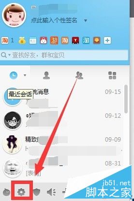 3、进入旺旺的主页面后,点击左下角的齿轮设置按钮。