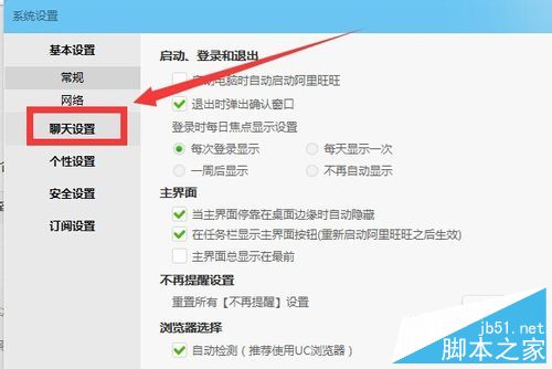 4、在出来的系统设置页面中,选择聊天设置选项。