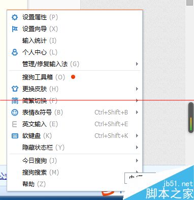 1、在搜狗输入法皮肤上面右键单击,打开快捷菜单,选择设置属性