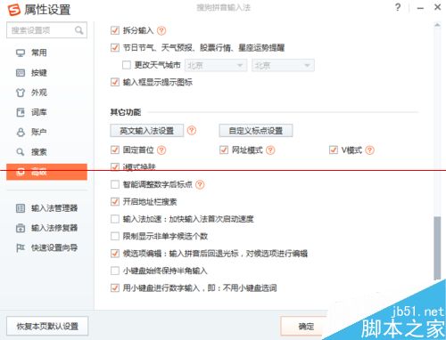 3、在高级选项中,翻页到最下边,把智能调整数字后标点的勾去掉,点击应用或确定