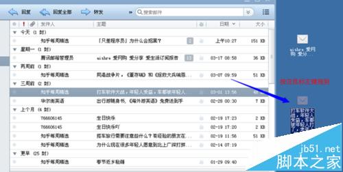 1、其实导出邮件还有一个更简单的办法,选择需要导出的邮件,按住鼠标拖动出来即可
